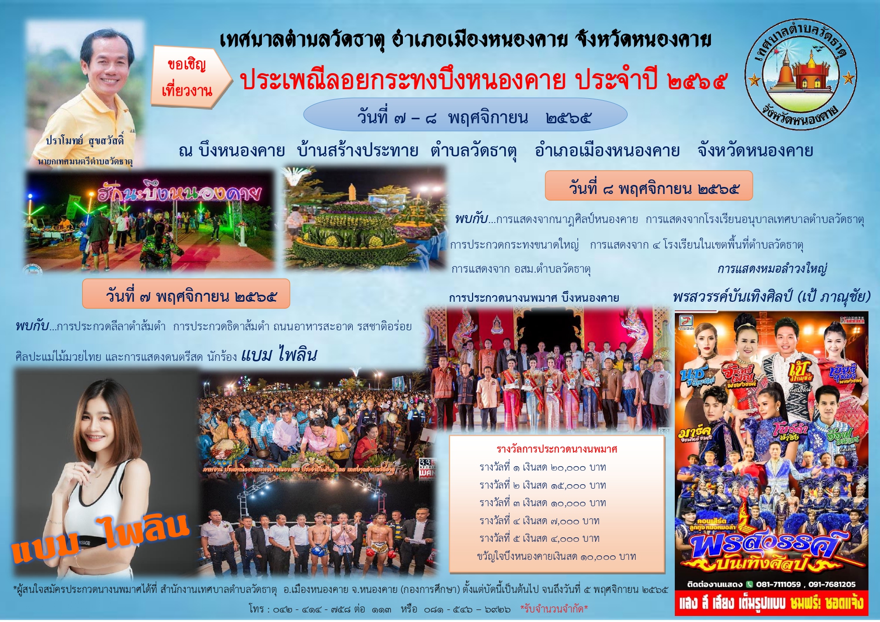 รับสมัคร “นางนพมาศ &กระทงประดิษฐ์ขนาดใหญ่” งานลอยกระทง เทศบาลตำบลวัดธาตุ