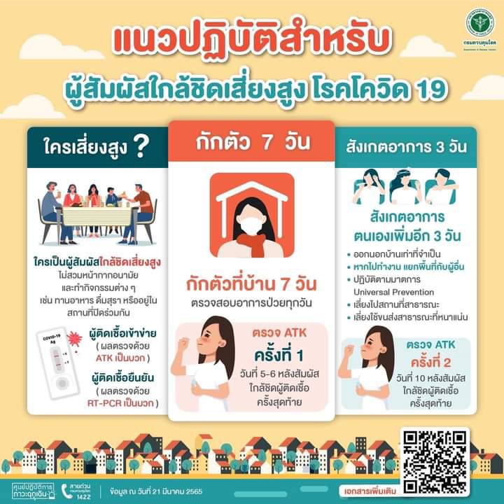 ประชาสัมพันธ์แนวปฎิบัติสำหรับผู้สัมผัสใกล้ชิดเสี่ยงสูงโรคโควิด 19