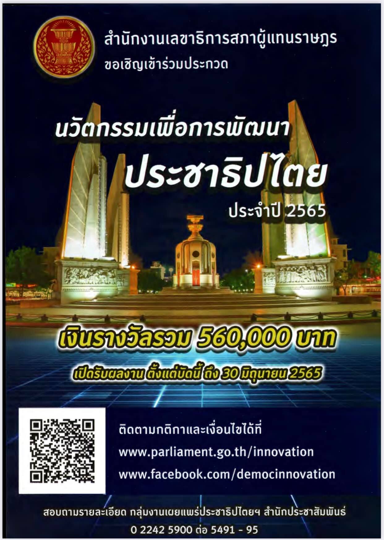 ด้วยสำนักงานเลขาธิการสภาผู้แทนราษฎรได้จัดการประกวดนวัตกรรมเพื่อการพัฒนาประชาธิปไตย ปีพ.ศ. 2565